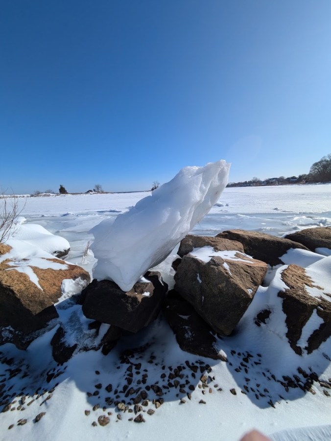 Ice fragment left by high tide on causeway rock. Photo by Andrew ChinÂ