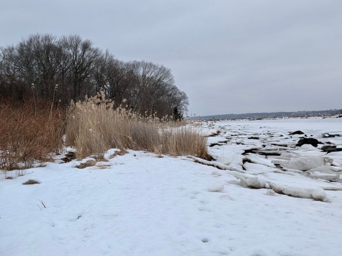Northward from south end of Marsh Trail, where plates of ice press against shore. Photo by M. WongÂ