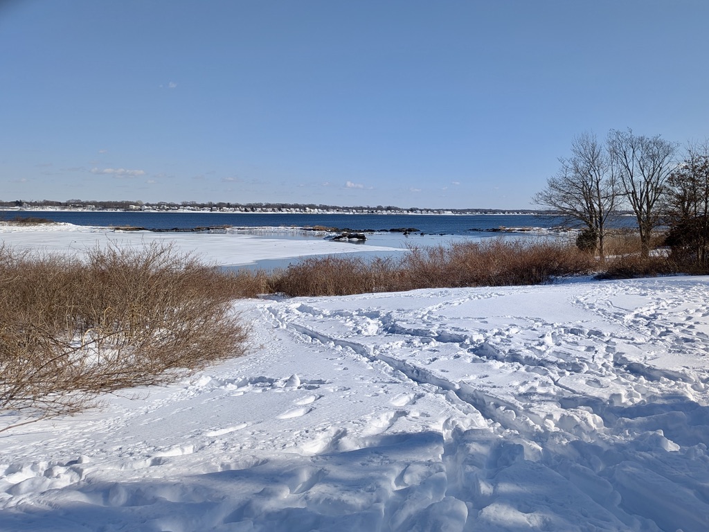 As of January 29th, 2026, the entire park was under at least a foot of snow except for the plowed area in the parking lot. Persistent low temperatures formed ice floes in both North and South Coves. Tidal movement then heaved large plates of ice on top of rocks and along the shore.