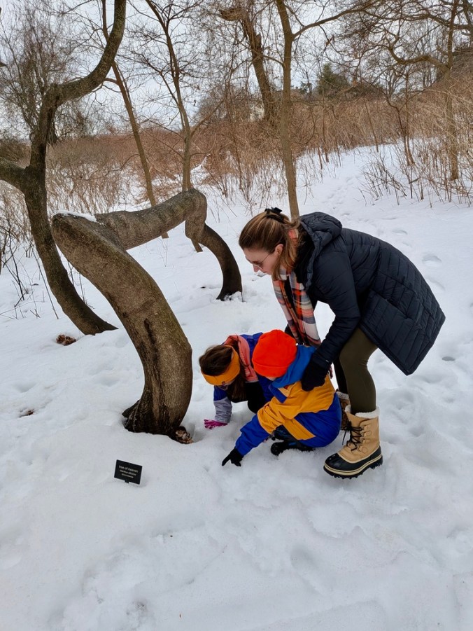 One family was admiring the tree-of-heaven along Audubon Trail only to discover traces of the Spotted Lanternfly at the base of the geometric trunk. There was a heavy infestation during the fall of 2025.Â