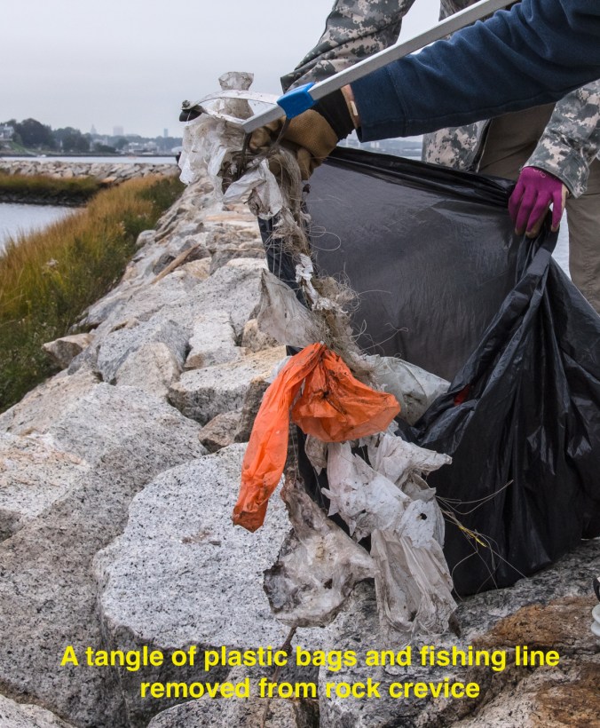 FoSG members spoke directly with more than a hundred visitors to the breakwater and causeway, encouraging them to carry their trash back to the waste containers in the parking lot.