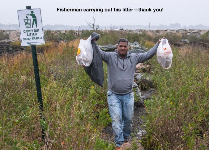 FoSG members spoke directly with more than a hundred visitors to the breakwater and causeway, encouraging them to carry their trash back to the waste containers in the parking lot.