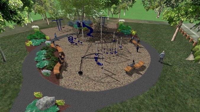 The proposed new playground will encourage active play in an attractive gathering space. View is facing south.