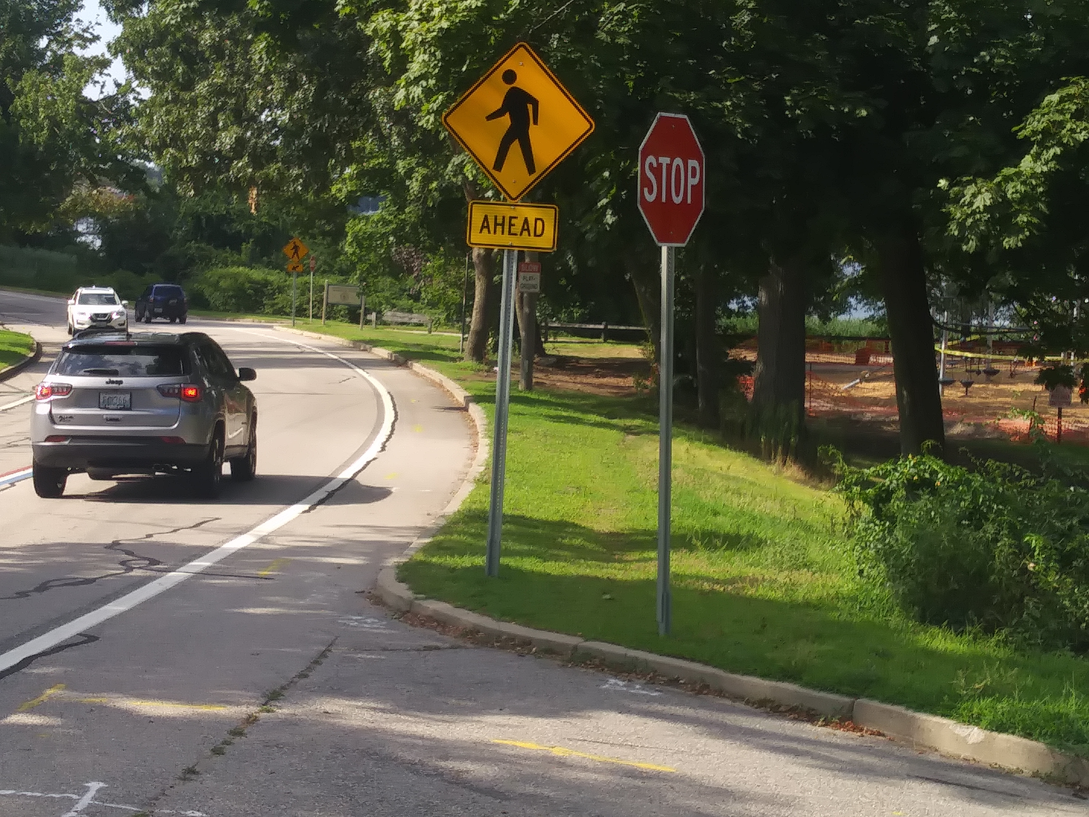 RIDOT has installed new signs alerting drivers to the pedestrian crossing on the Parkway. The City has begun working with RIDOT regarding a guardrail between the Parkway and the new playground.