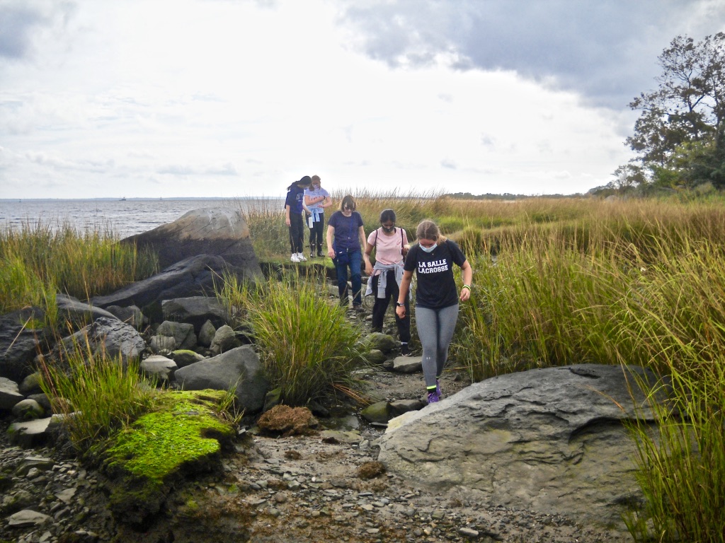 FoSG volunteers Marina Wong and Joan DiSanto gave a tour of Salter Grove on October 16th to members of the Environmental Action Club from La Salle Academy (Megan Chan, Kendall Leishing, Leya Mohan, Aidan Murray, and Mia Swenson) so they can assess how to dedicate their community service hours to help mitigate the environmental problems of the park. Several of the students were particularly interested in coastal and marine environmental issues.