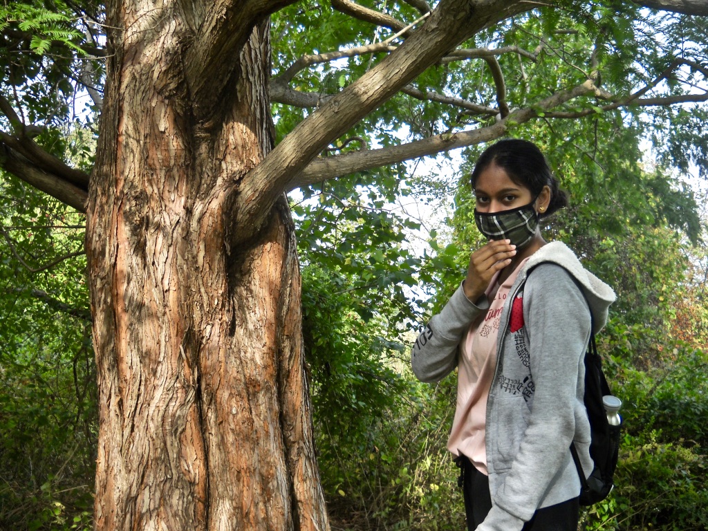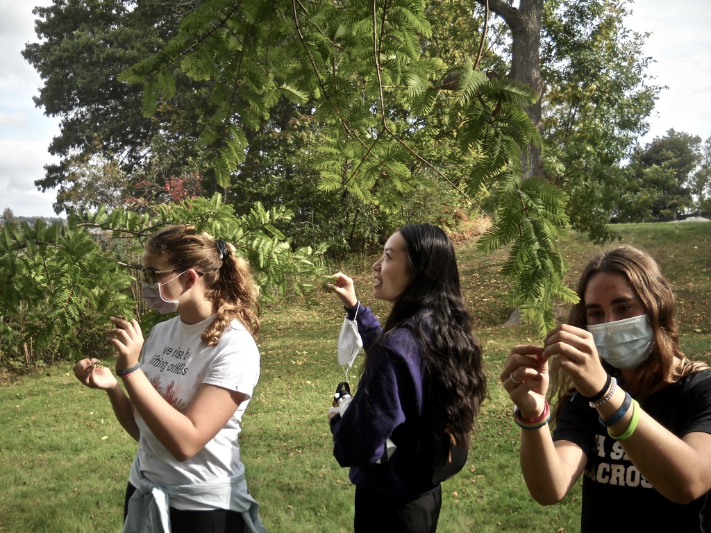 Students quickly realized that they cannot distinguished native plants from introduced plants just from looking so they were shown specific examples and readily learned to recognize poison ivy—a native even if noxious species! Of the 17 climbing plant species in the park, they examined how three of them used different techniques to reach the tops of trees. The students were also challenged to describe the arrangement of leaves, a key character used to identify woody plants.
