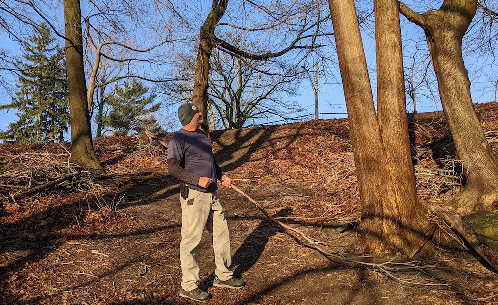 A thick layer of large wood chips has done a great job of retaining soil moisture where no water standpipe is available. Let’s keep this area clean and attractive!