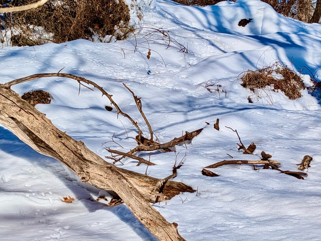 The snow cover in February also revealed which brush piles were ineffective as thermal shelters. Those dense with thick woody stems, but lacking sufficient insulation, were devoid of animal tracks.