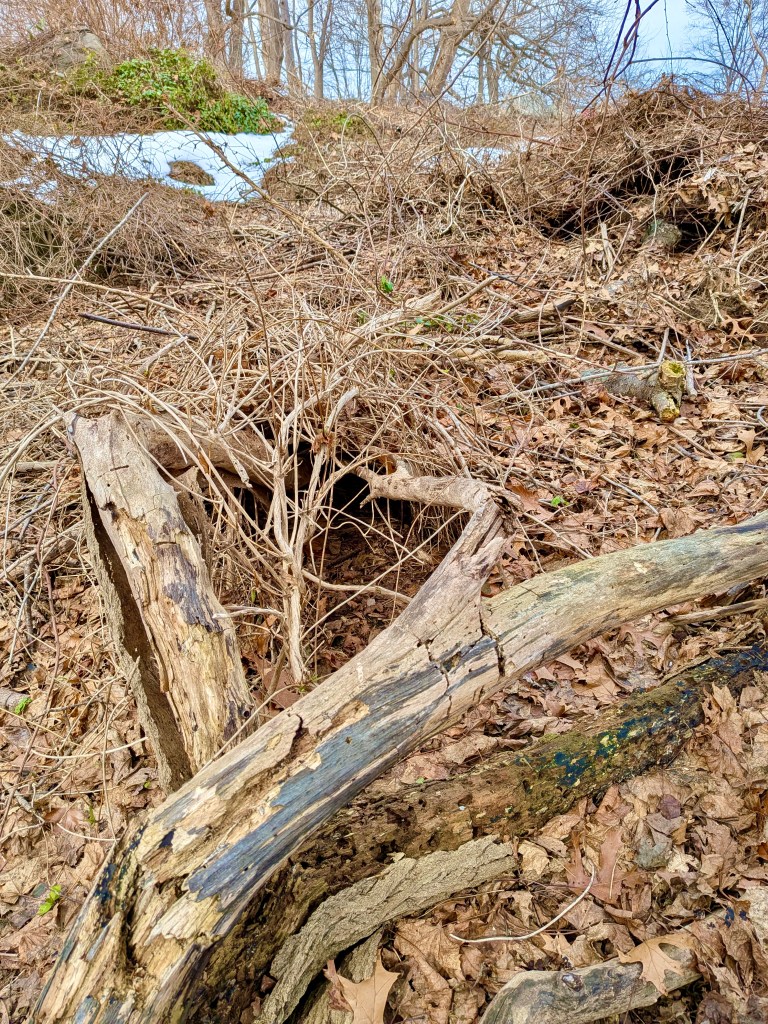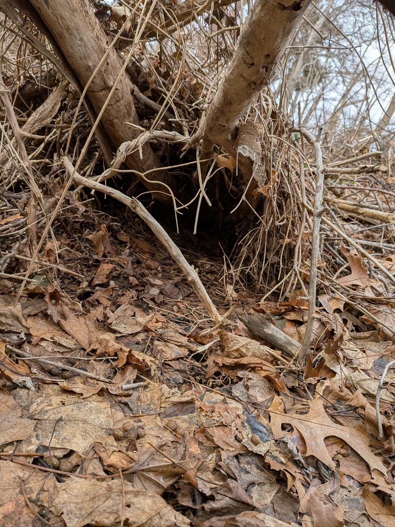Once the snow had melted, the appearance of well-worn entrance holes in these brush piles proved that they were used as shelters during a period of extreme cold.